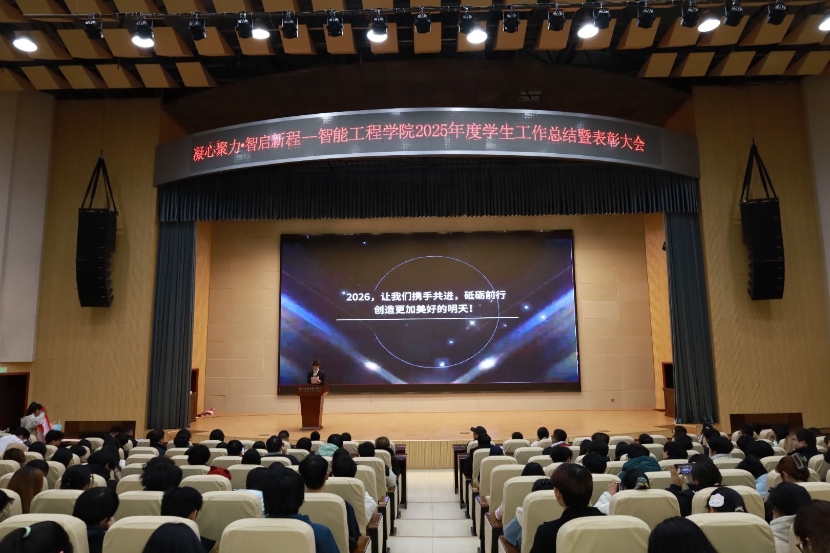 新闻网讯(文/金顶胜 杨晓宝 图/杨武鑫 杨玉龙)2026年1月9日,太阳成集团tyc122ccvip2025年度学生工作总结暨表彰大会在和山会堂顺利举行。大会以志愿服务队和分团委学生会共同带来的舞蹈《像我这样的朋友》拉开帷幕,学院师生齐聚一堂,总结过往成果,表彰先进典型,谋划未来发展。